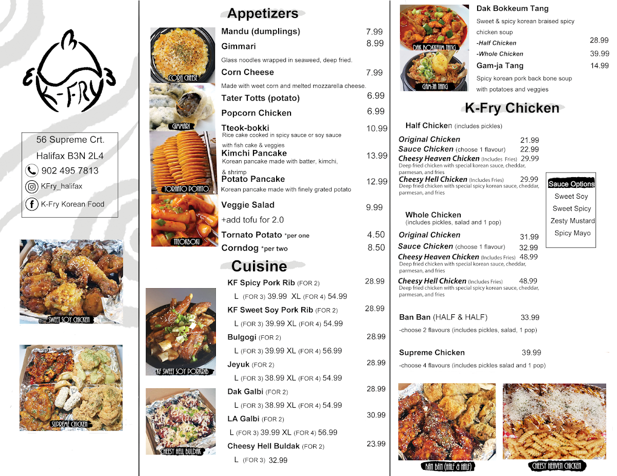 If you're scouring Halifax for authentic Korean cuisine that tantalizes your taste buds, look no further than K-Fry Korean Food Boss Plaza located at 56 Supreme Ct. This vibrant eatery specializes in Korean fried chicken, delivering a menu that's both diverse and deeply satisfying for any food lover. The ambiance is casual yet welcoming, making it the perfect spot whether you're grabbing a quick bite or enjoying a meal with friends.